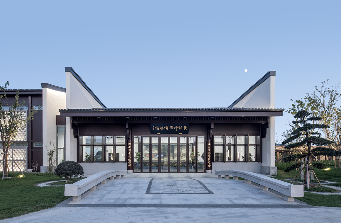 設計以蘇式傳統民居粉墻黛瓦為基色,取其進落的基本結構,以山墻間隔 劃分主次空間,其中圍合院落天井,形成豐富的傳統意象空間。山墻形式上, 采用傳統“觀音兜”的硬山做法,對其進行現代轉譯,以連續起伏的山墻演繹 評彈宛轉悠揚的曲調,沿河一岸,如重重民居起伏的屋面,層層疊疊的曲 線山墻,與百年評彈的迤邐之音,在場地共鳴。