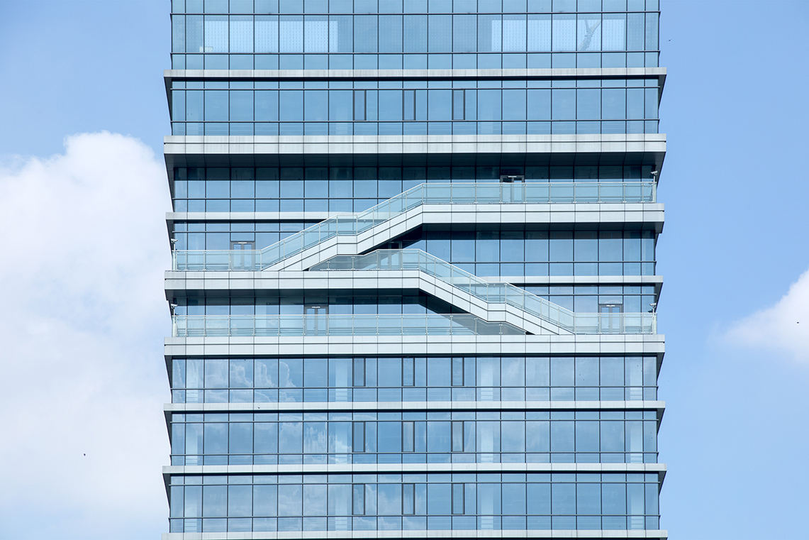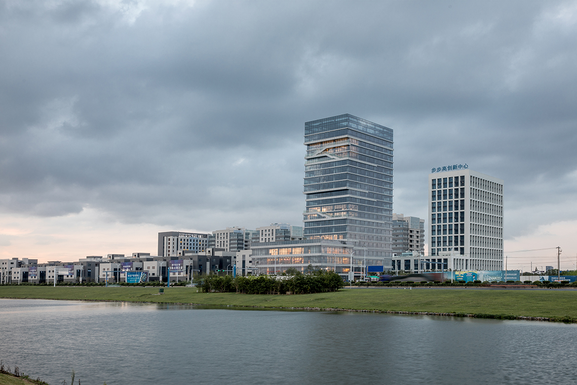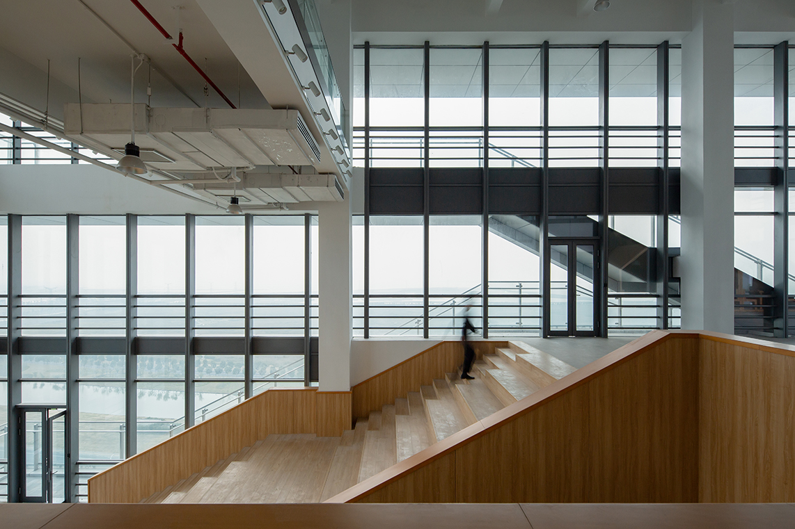 項目最大的挑戰來自于空間特色和空間收益之間的平衡問題,設計從無序又眾多的客觀條件中,逐步梳理出對項目有利和不利的條件,漸漸找到了關鍵問題,和打造獨特的項目屬性的可能性。建筑西臨寬闊的東太湖岸線美景與繁忙公路,使得湖景與噪聲這一對利弊因素的調和,成為了設計難點。與此同時,通透的玻璃幕墻,讓西曬問題成為了室內功能布置和節能方面的一個弊端。看湖景還是控噪聲?視線通透還是避免西曬?對這些利弊矛盾的妥善處理,成為了設計的切入點和成功的關鍵。