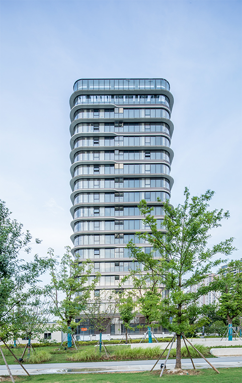 項(xiàng)目總體布局為沿南天成路一字排開,包含兩棟商務(wù)辦公、一棟公寓式酒店,兩層配套用房作為底座三大部分。項(xiàng)目背靠滬寧鐵路線,有得天獨(dú)厚的地理?xiàng)l件,因此沿南天成路立面上橫向挑檐強(qiáng)化出建筑橫向延展的形態(tài),線腳端部的細(xì)部處理,勾勒出列車輪廓,體現(xiàn)高鐵車頭之形,立面構(gòu)成上錯(cuò)動(dòng)布置,與身后高頻率行駛的高鐵列車交相輝映,蘊(yùn)含高鐵新城的快速發(fā)展之意。