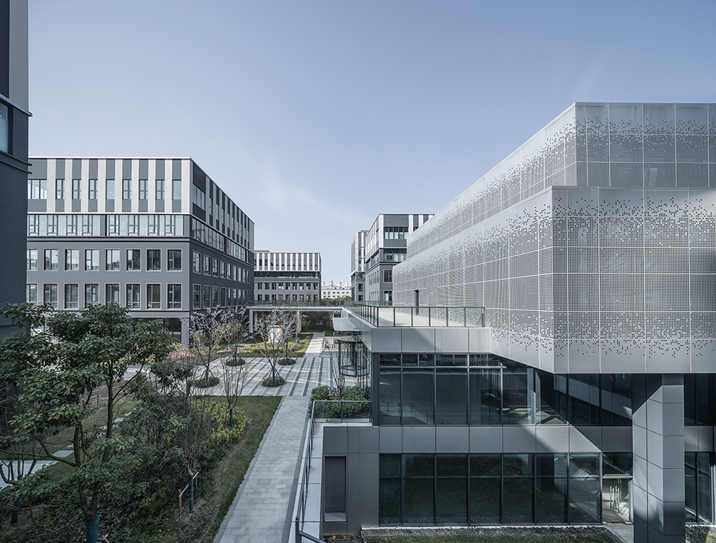 規劃建設研發工業研發類用房,打造以數字經濟、互聯網+、智能制造等為主導產業的高水平新型工業園區。建筑立面的最大特色是強調雕塑感的金屬壁板及鋁板立面,體塊之間的縫隙將建筑內部的花園景觀與活力展示給外界,并同時將外部景觀引入建筑內部營造有機質感,使建筑與場地產生聯系。建筑立面采用高而窄的開窗方式,在保證合理窗墻比的前提下,可以帶給室內更多的陽光。 從中國傳統園林空間汲取智慧,我們的提案設計了內庭景觀區,立體 空間綠化系統,垂直綠化,觀景平臺,開放式綠色邊廊,庭院空間,屋頂 花園,場地景觀共同構成不同標高的,多層次的綠化空間系統,不同空間 互為借景,公共綠地就在身邊,綠意觸手可及,可持續的花園景觀空間溶 解在建筑內外的各個層面,成為建筑中可呼吸的“綠肺”。