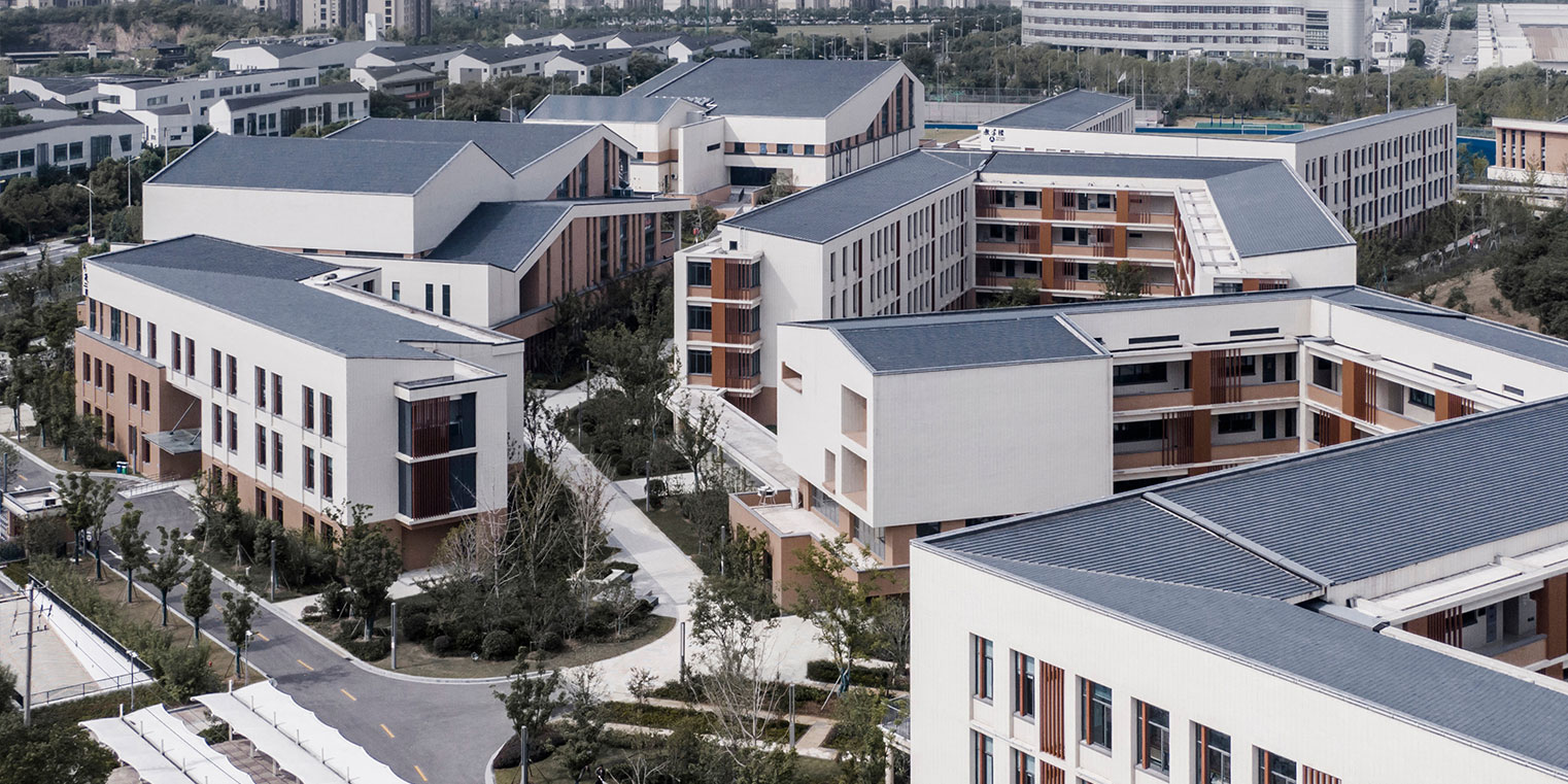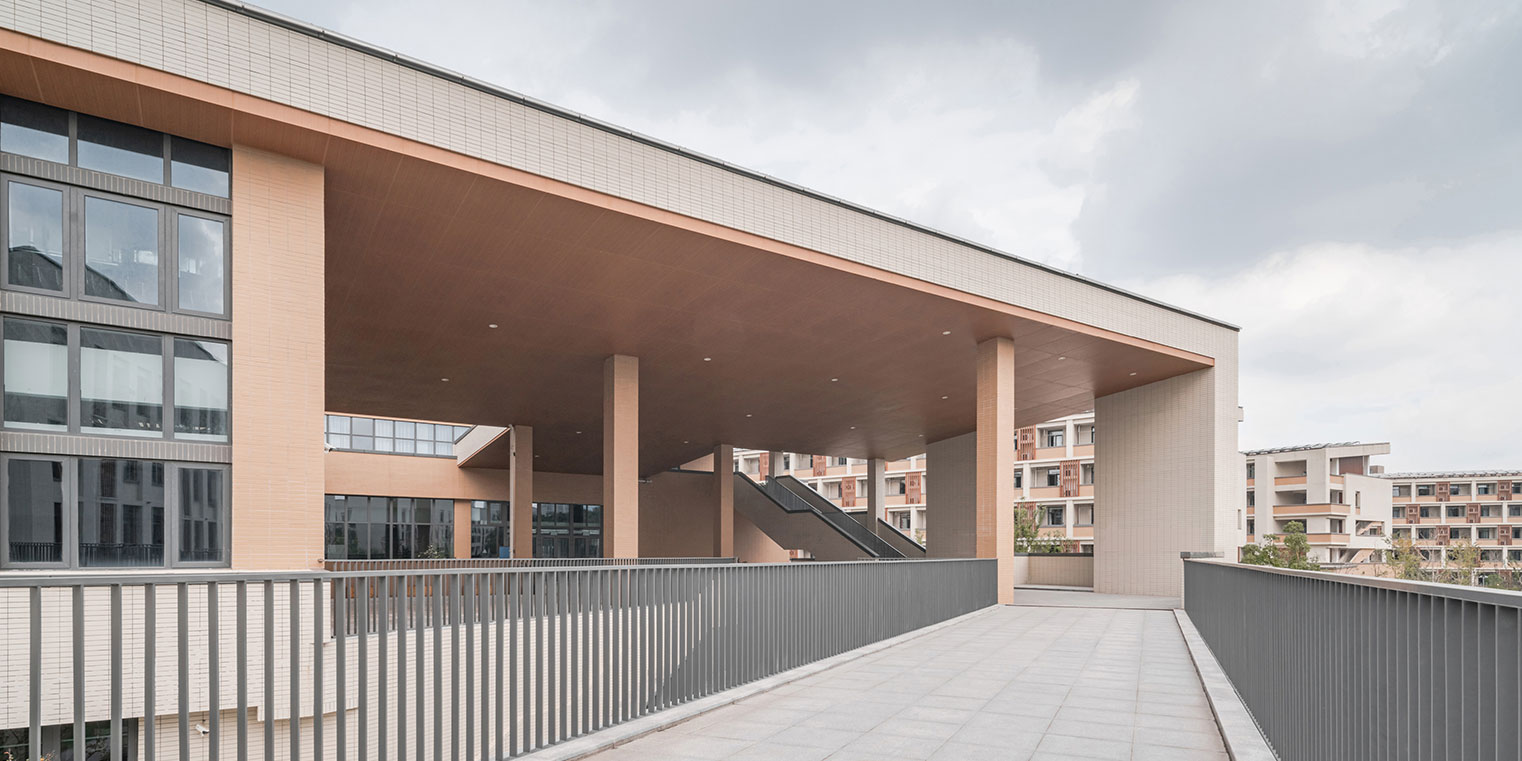 “U”型的總圖布局注定了學(xué)校環(huán)思古山而行的單行長流線,但為了迎合高中生緊湊的日常作息,校園教學(xué)區(qū)建筑的整體節(jié)奏也應(yīng)該是緊湊的,為了實(shí)現(xiàn)空間的最高效利用,教學(xué)區(qū)建筑呈聚落式環(huán)繞山水展開,并采用“串葫蘆”的方式,利用游廊將所有的建筑串起來。 整個(gè)校園環(huán)起于學(xué)生教師公寓,途經(jīng)食堂、教學(xué)區(qū)、實(shí)驗(yàn)樓,終于國際部,游廊使這些相互獨(dú)立的功能互相聯(lián)系形成一個(gè)有機(jī)整體,它是學(xué)生生活學(xué)習(xí)路上的交通捷徑,有效縮短了學(xué)生們不必要的路上時(shí)間。