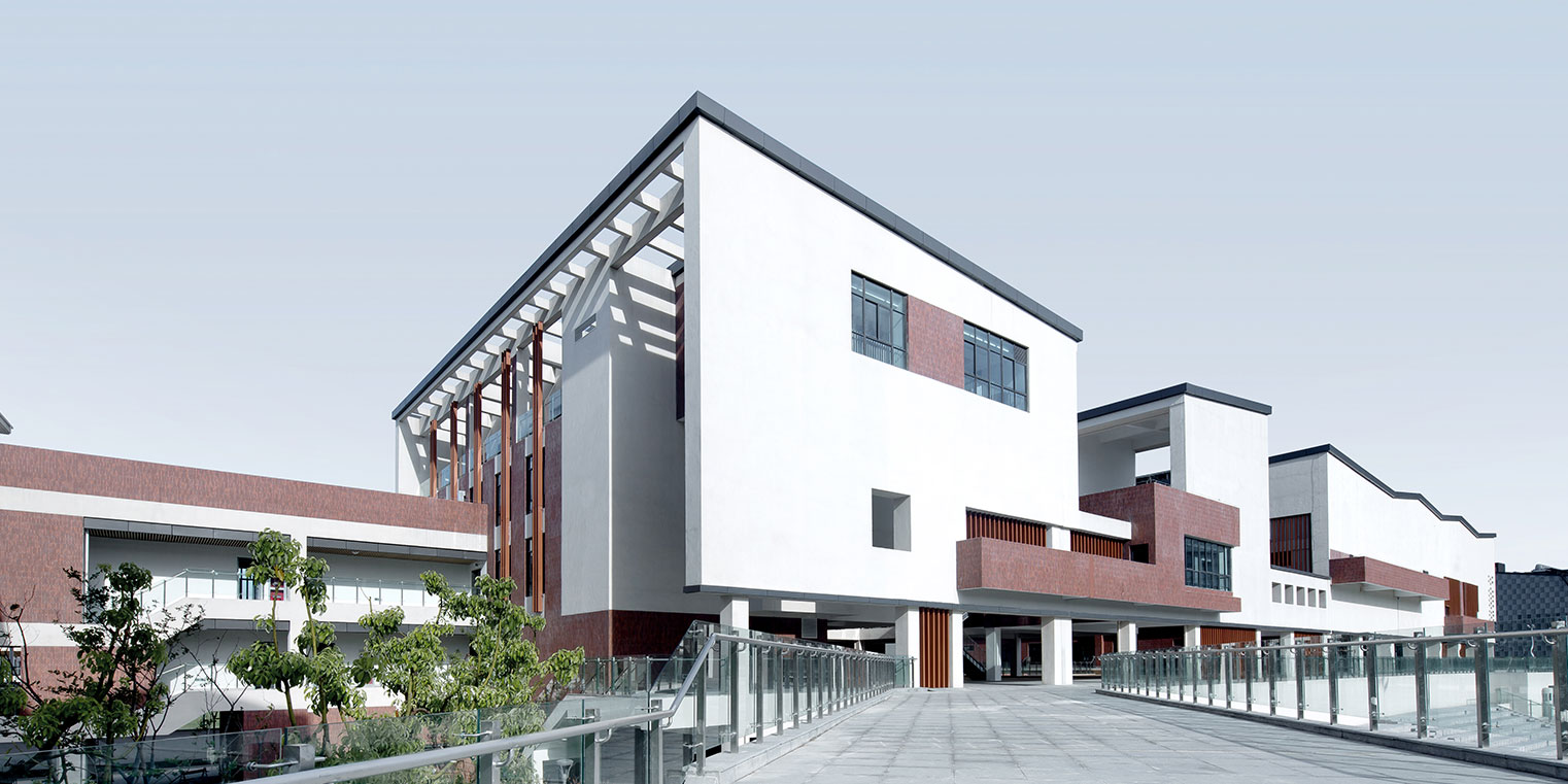 項目位于蘇州高新區(qū)獅山街道,屬于在原址校園中進行擴建的類型,擴建場地極其局促,設(shè)計師在“螺螄殼里做道場”,開啟了“極限挑戰(zhàn)”模式:在極為有限的用地中創(chuàng)造最大化的教學(xué)與活動空間,讓師生充分感受校園綜合體的魅力。