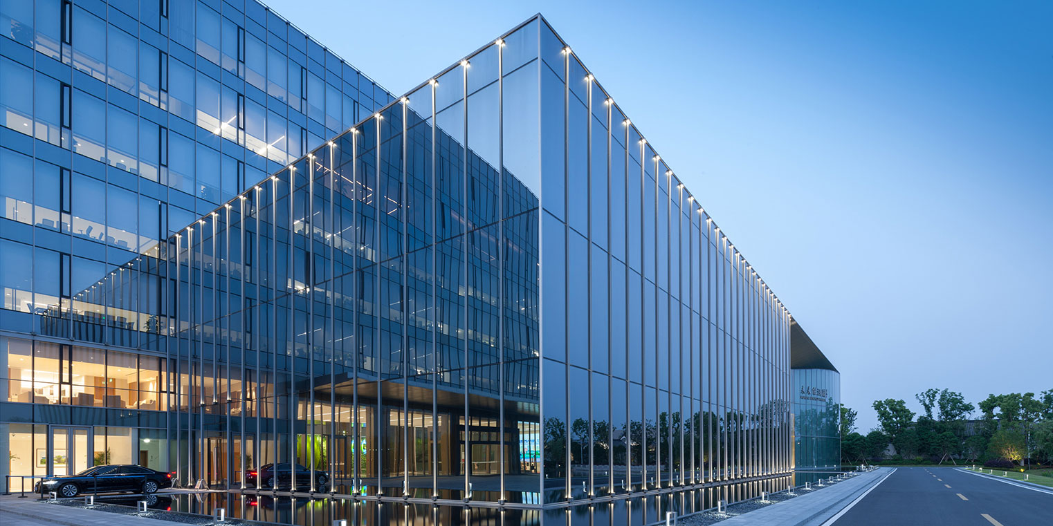 項目二期包括科研大樓(主樓)和未來能源館(裙房),作為全球新能源及硅材料研究的領軍項目建設秉著因地制宜、被動主動結合、建筑技術一體化設計等理念,制定綠色技術策略,實現節能舒適、綠色生態、現代實用的辦公研發大樓。 項目亮點: 1、可再生能源一體化設計:太陽能系統布置于辦公樓屋面、光伏發電系統布置于屋頂、水面、入口展示、遮陽車棚等處,地源熱泵系統換熱埋管位于景觀水底。 2、自然采光優化:外立面主要為玻璃幕墻結構,自然采光效果良好,同時為了解決大采光進深的問題,分別在主樓和展廳樓設置了大面積的采光天窗。 3、新風系統采用熱回收式新排風機組,電梯采取變頻調速拖動方式。 4、設置合理的智能化系統:包括智能化集成系統、信息設施系統、信息化應用系統、建筑設備管理系統和公共安全系統、機房工程及建筑環境等要素。