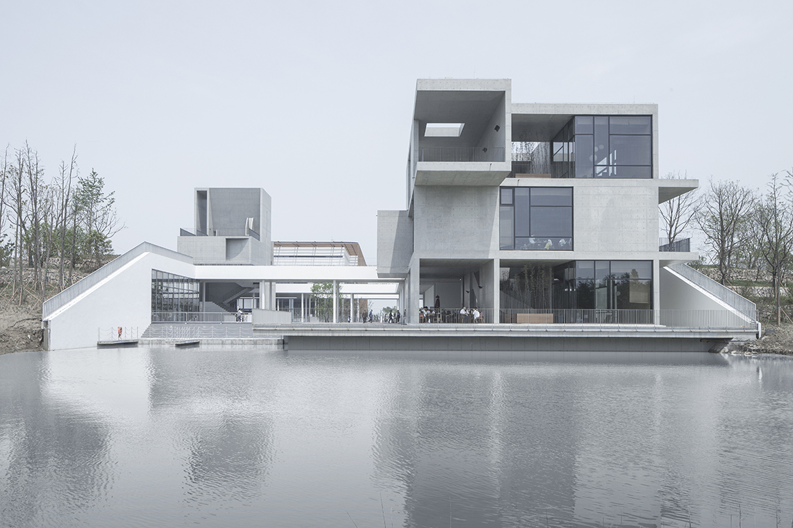 項目選址于蘇州吳中區(qū)臨湖鎮(zhèn)太湖邊 . 承載非物質(zhì)文化遺產(chǎn)展廳、飛行影院、餐廳等多個功能,在三面臨水的生態(tài)環(huán)境里,鋼模清水混凝土餐廳和制高點造型景觀塔建筑造型格外引人注目,是園博園工程的標(biāo)志性建筑之一。