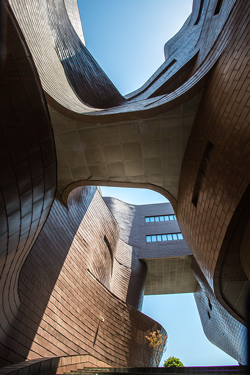行政信息樓設(shè)計(jì)概念源于“太湖石”,既是對建筑所處地域文化的呼應(yīng),也通過內(nèi)外連通的孔洞使建筑更好地融入于校園環(huán)境中。兩層高的裙房從北廣場以綠坡緩緩升起,和屋頂花園連為一體,建筑仿佛從地下“破土而出”。塔樓的造型由“太湖石”切削而來,外輪廓呈立方體,以呼應(yīng)北校區(qū)井然有序的建筑肌理;內(nèi)部的孔洞作為各功能區(qū)之間的空間分隔,自然地形成了貫穿多層的空中花園。外立面的開洞使建筑成為一個(gè)可呼吸的有機(jī)體,也提高了這座校園中心建筑的吸引力。